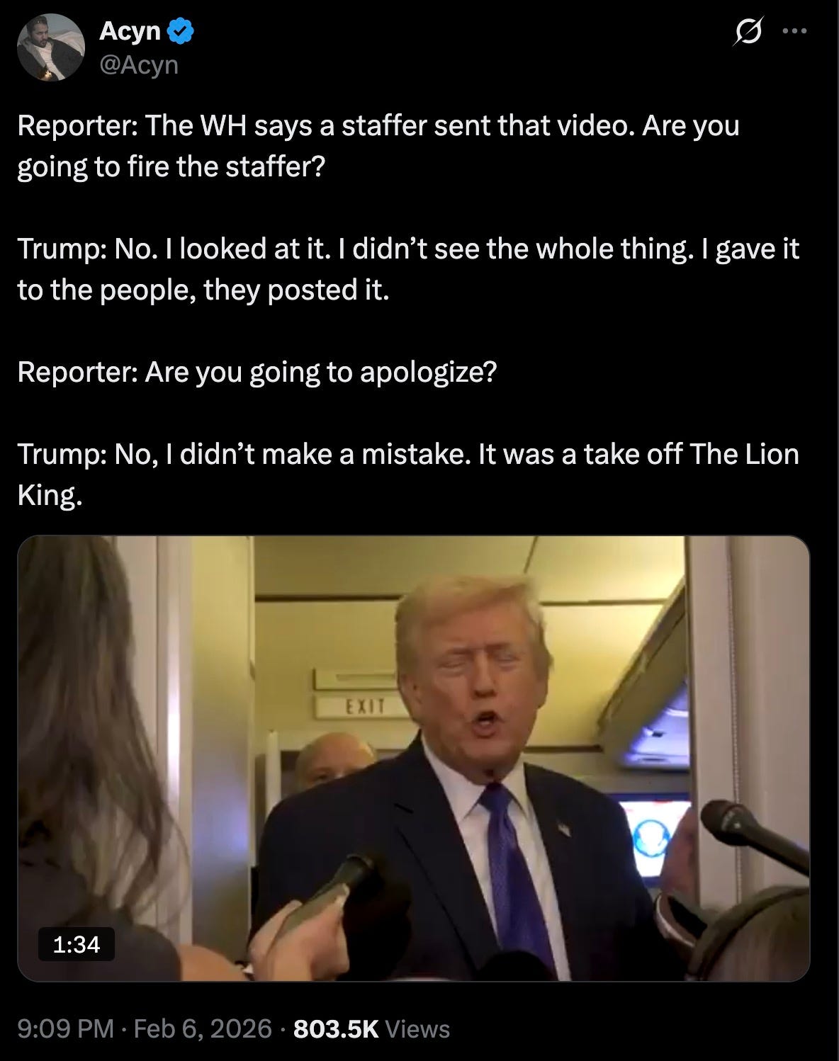 later Friday evening, flying down to Motel-a-Lago on Fuckface Force One, the press asked the fucking idiot these very questions — and that’s when we got a third version of the story. it was the fucking idiot himself who found the video, and gave it to the rando to post. but it’s okay, because the fucking idiot didn’t look at the video before having it posted.