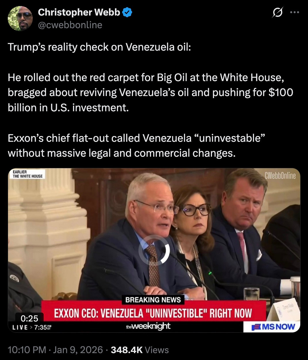 “Exxon’s chief flat-out called Venezuela ‘uninvestable’ without massive legal and commercial changes.”
