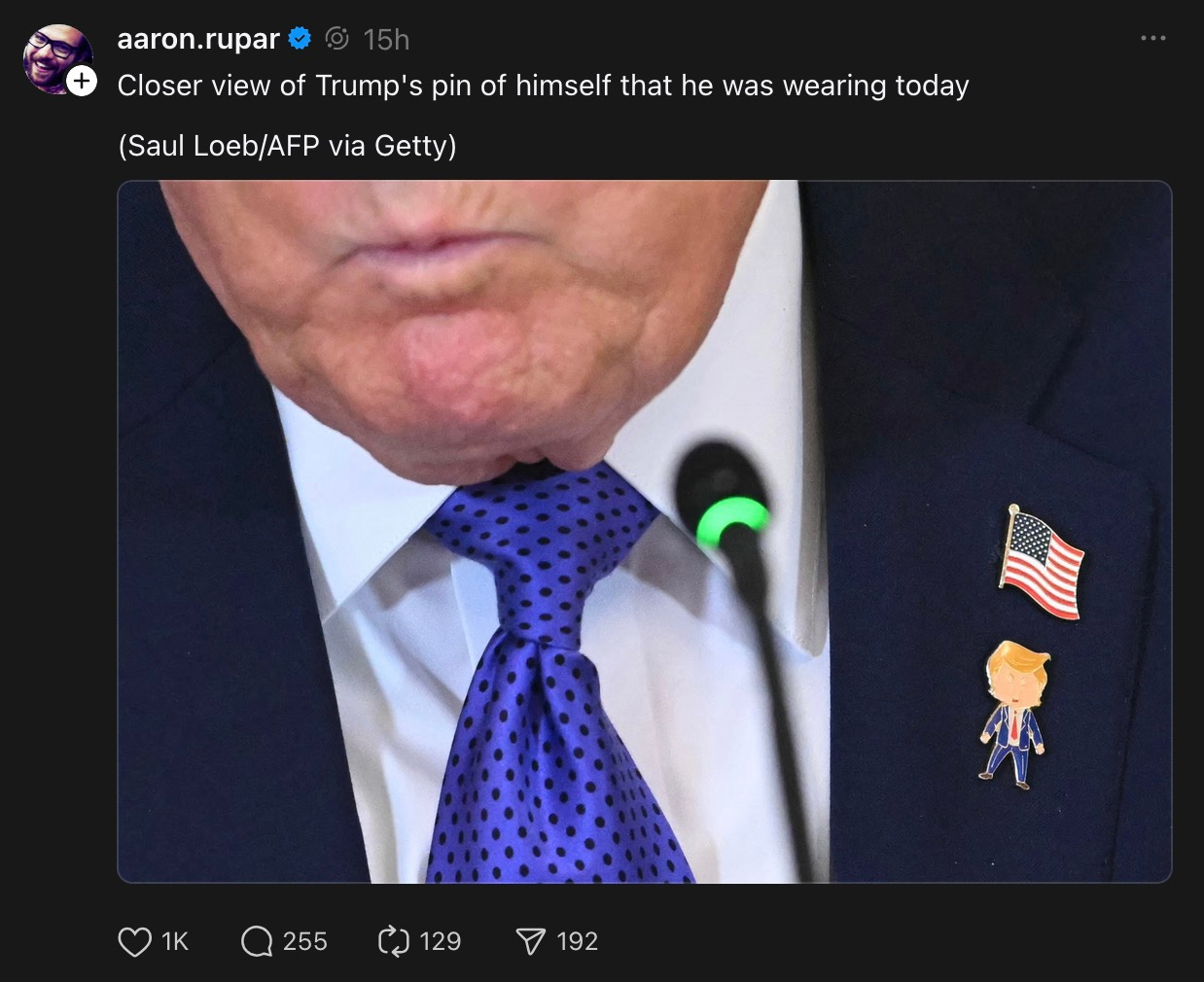 the fucking idiot wore a lapel pin of himself.