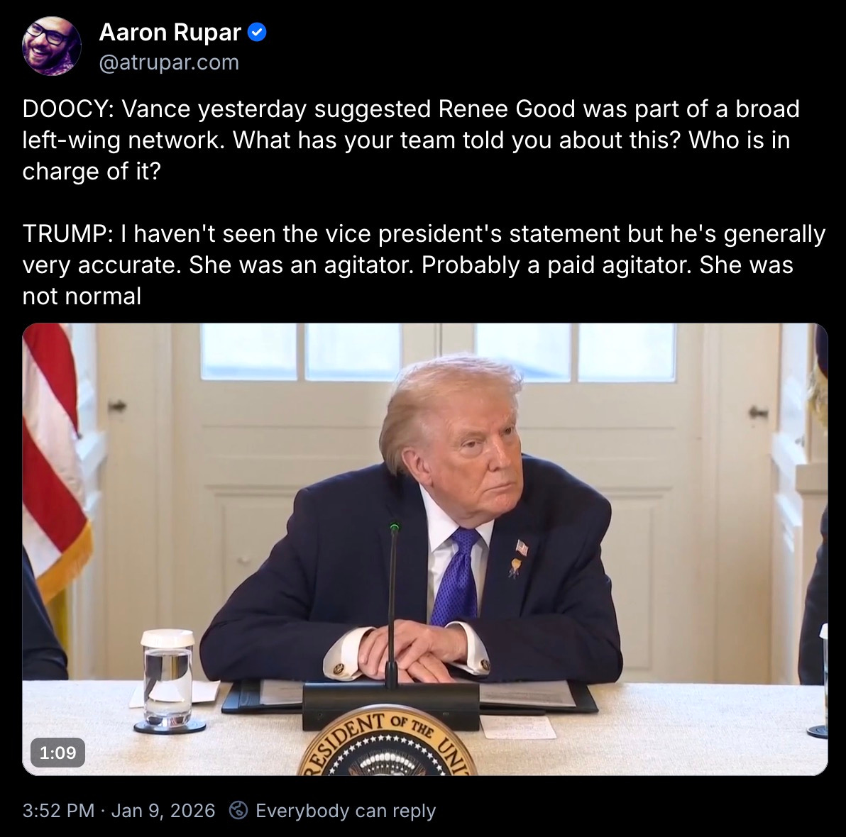 the fucking idiot also shit all over the memory of the innocent woman who his ICE thugs straight-up murdered.