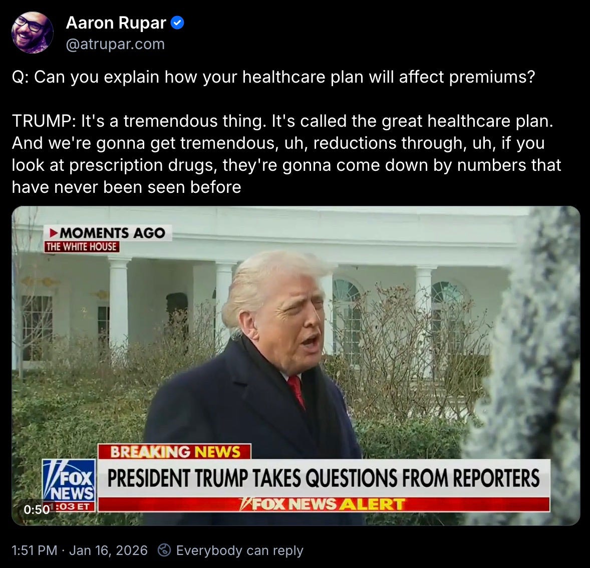 when pressed afterwards by reporters about about how his healthcare plan would work, the fucking idiot couldn’t come up with one actual fact about it.
