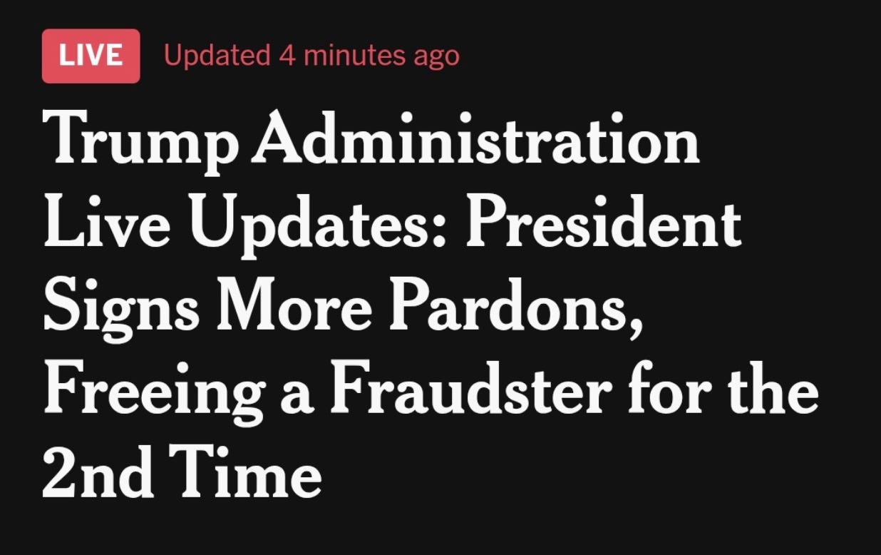 included in the list was some shitwad who already been pardoned once by the fucking idiot — after which she got convicted again, after committing the same crime for which she’d been pardoned the first time. how much do you want to bet she ends up getting pardoned a third time?