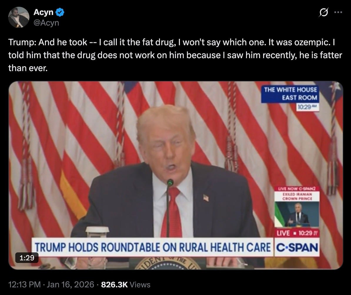 you have to love that ‘I won’t say which one’ was followed in the next breath by ‘it was ozempic.’
