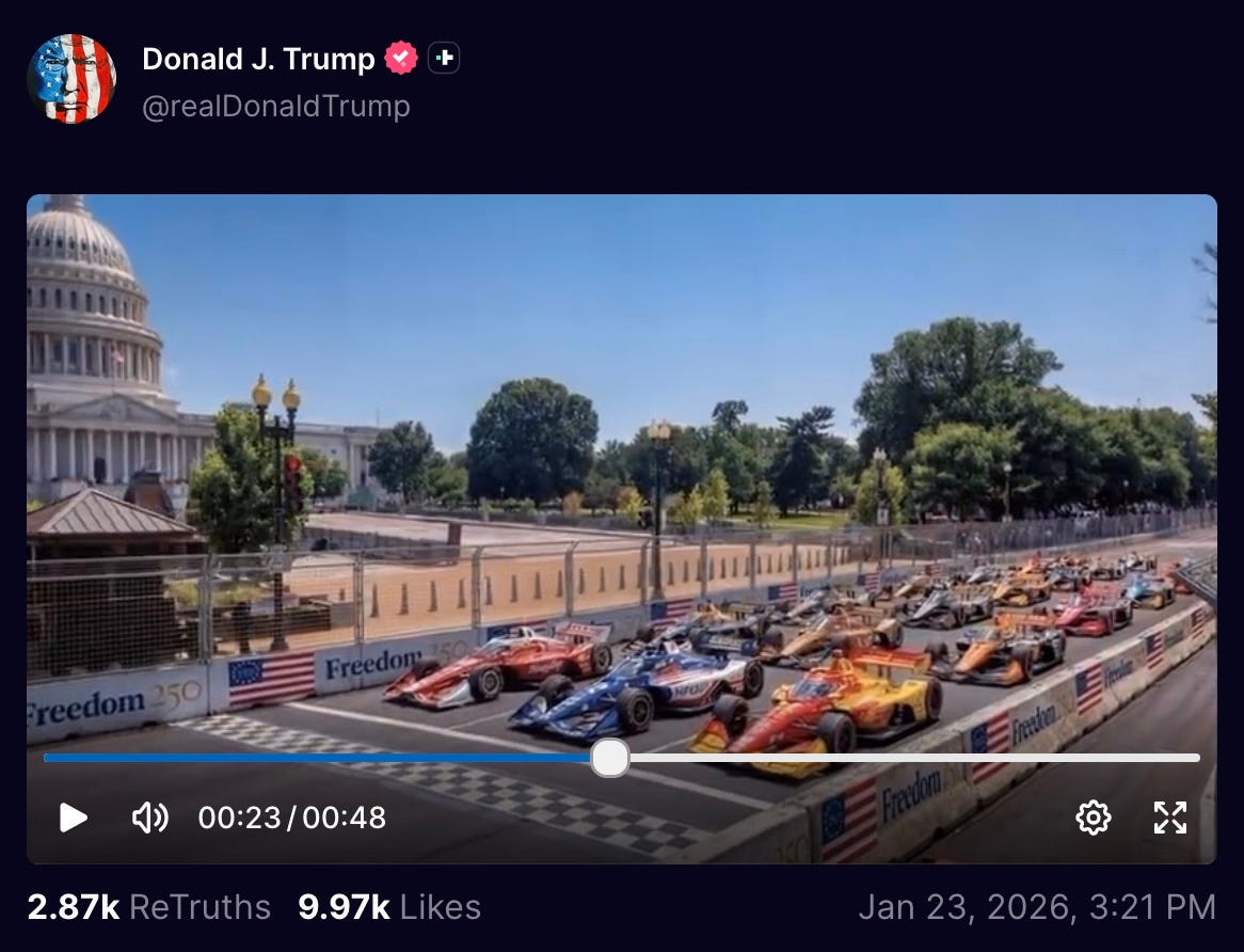 the fucking idiot also posted some AI slop of a Formula One race taking place in front of the US Capitol Building, because reasons, I’m sure.