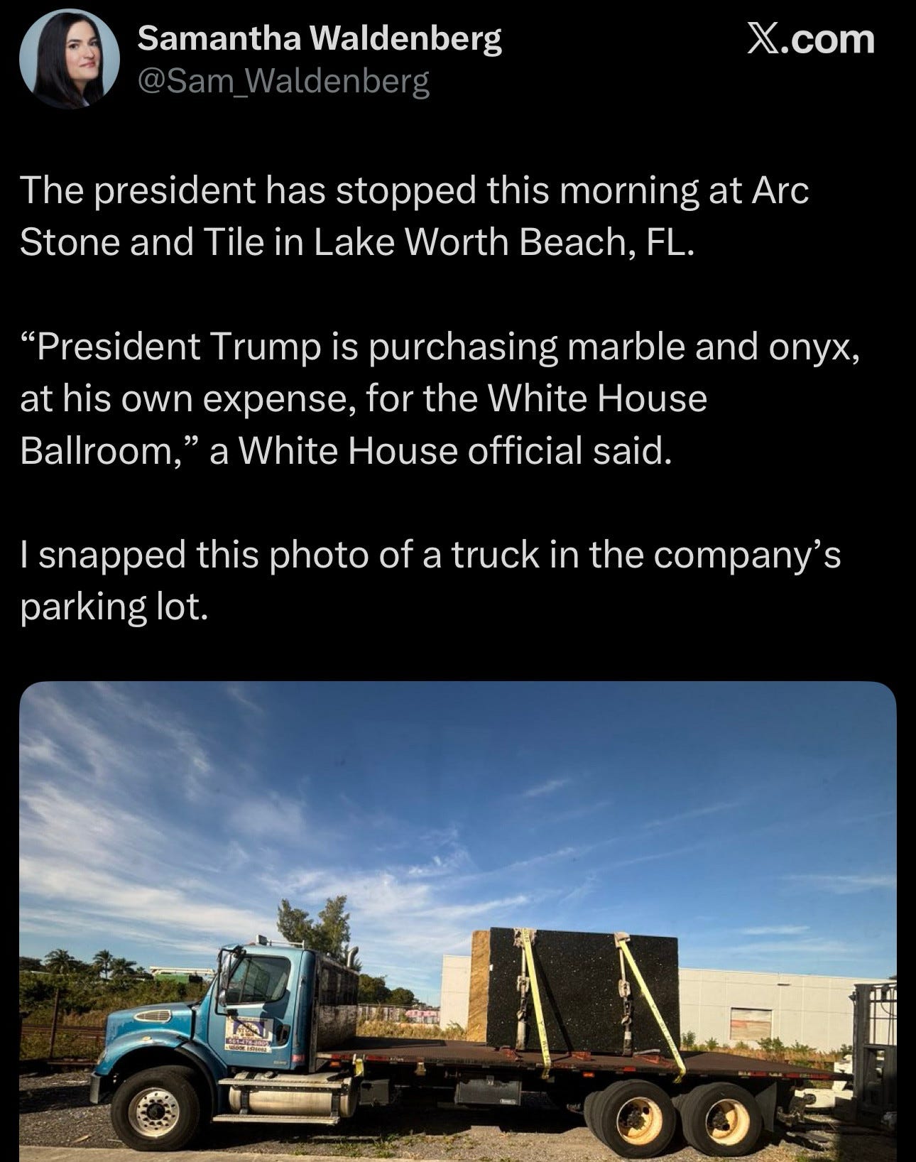 then, while on his way to cheat at golf, the fucking idiot went shopping for marble for his gaudy Epstein Dance Hall.