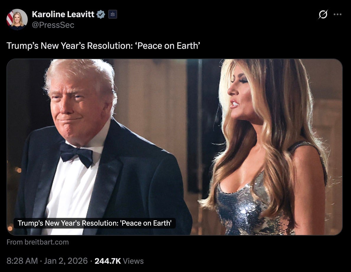 on Thursday, some fucking idiot declared that his New Year’s resolution was ‘Peace on Earth.’