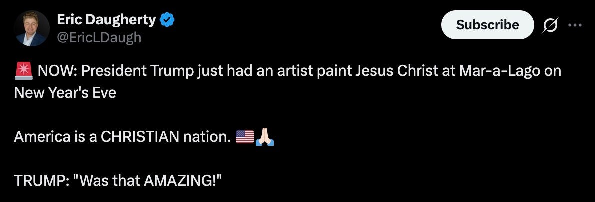 just wait — it gets dumbfuckier. the painting was then auctioned off for three million dollars, and the MAGAverse absolutely lost their minds.
