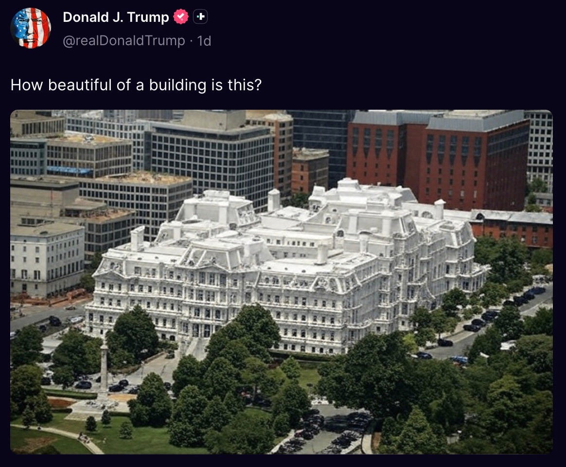 that’s the Eisenhower Executive Office Building. it’s next door the White House. this is what it currently looks like.