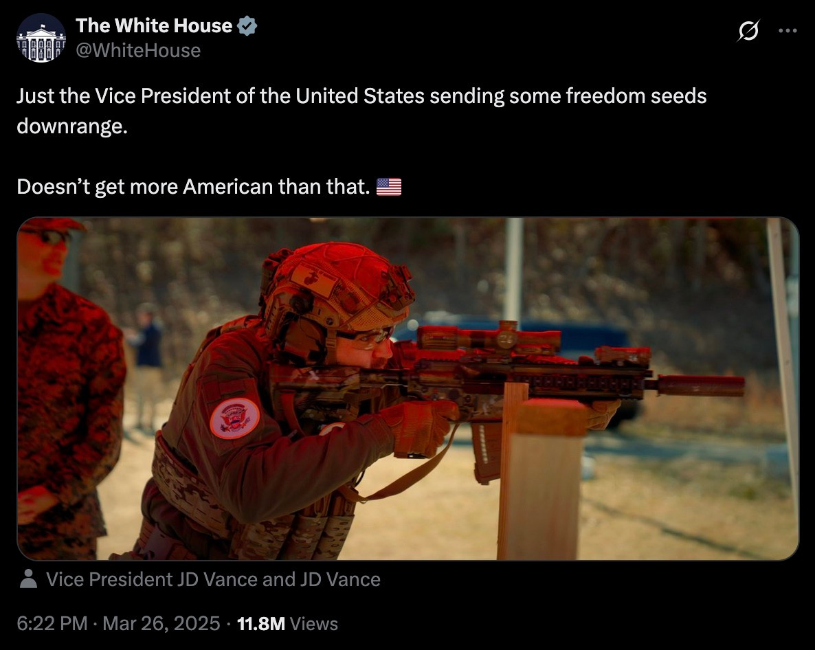 “Just the Vice President of the United States sending some freedom seeds downrange. Doesn’t get more American than that.”