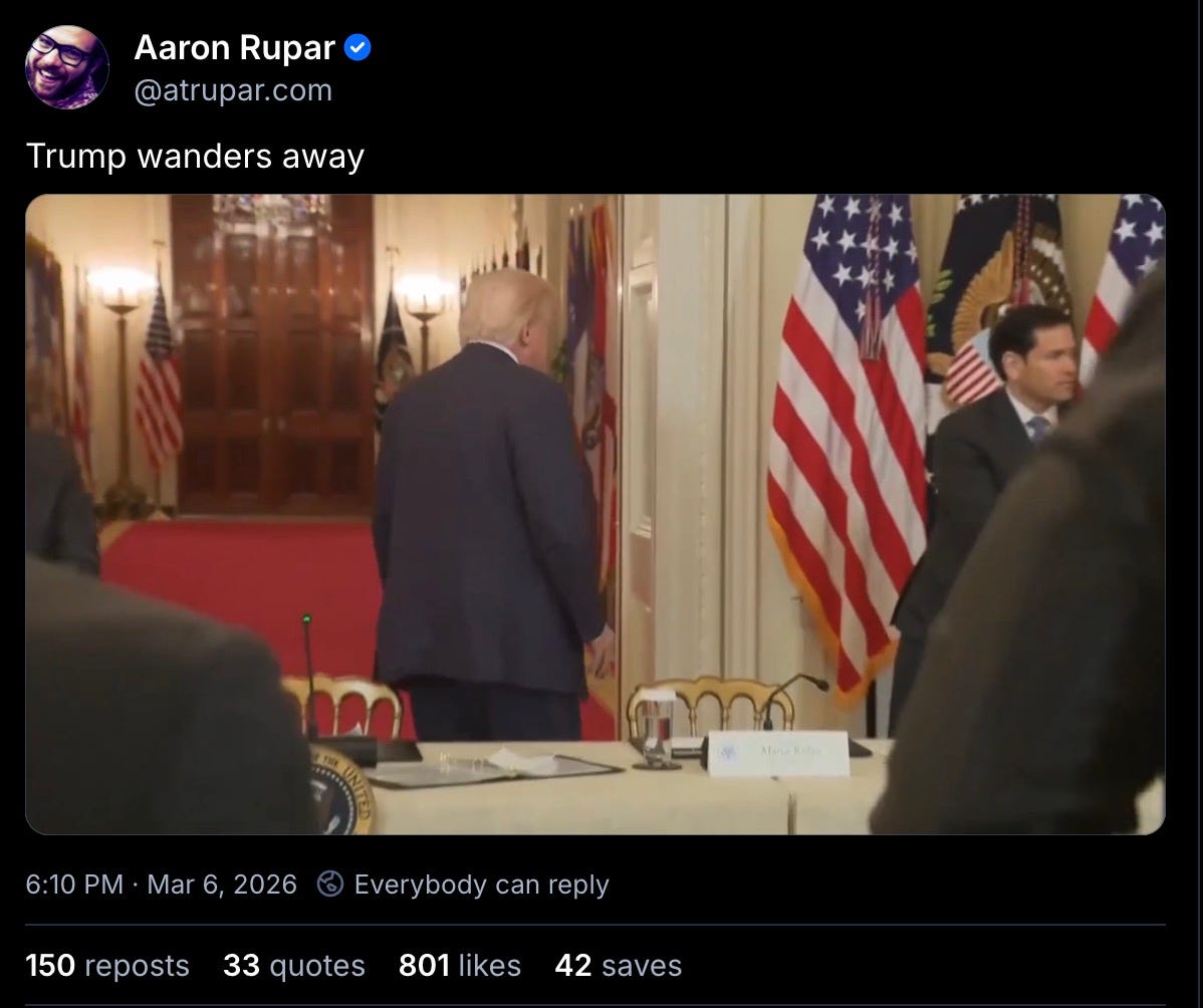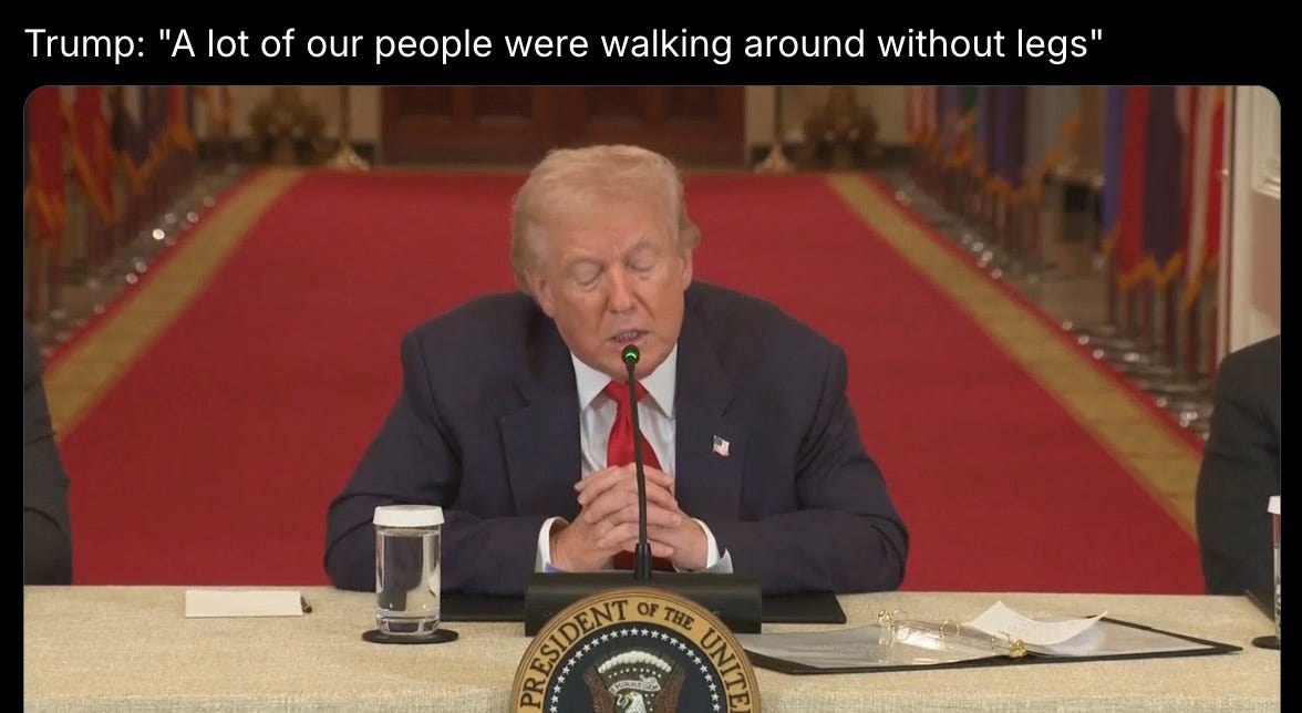 now back to the fucking idiot. his main even for the day was a ‘Saving College Sports Roundtable’ (from what?) — because I guess that’s what you focus on when you’re in the middle of a war (and also a fucking idiot). anyway, the fucking idiot dropped a stunning bit of news on us.