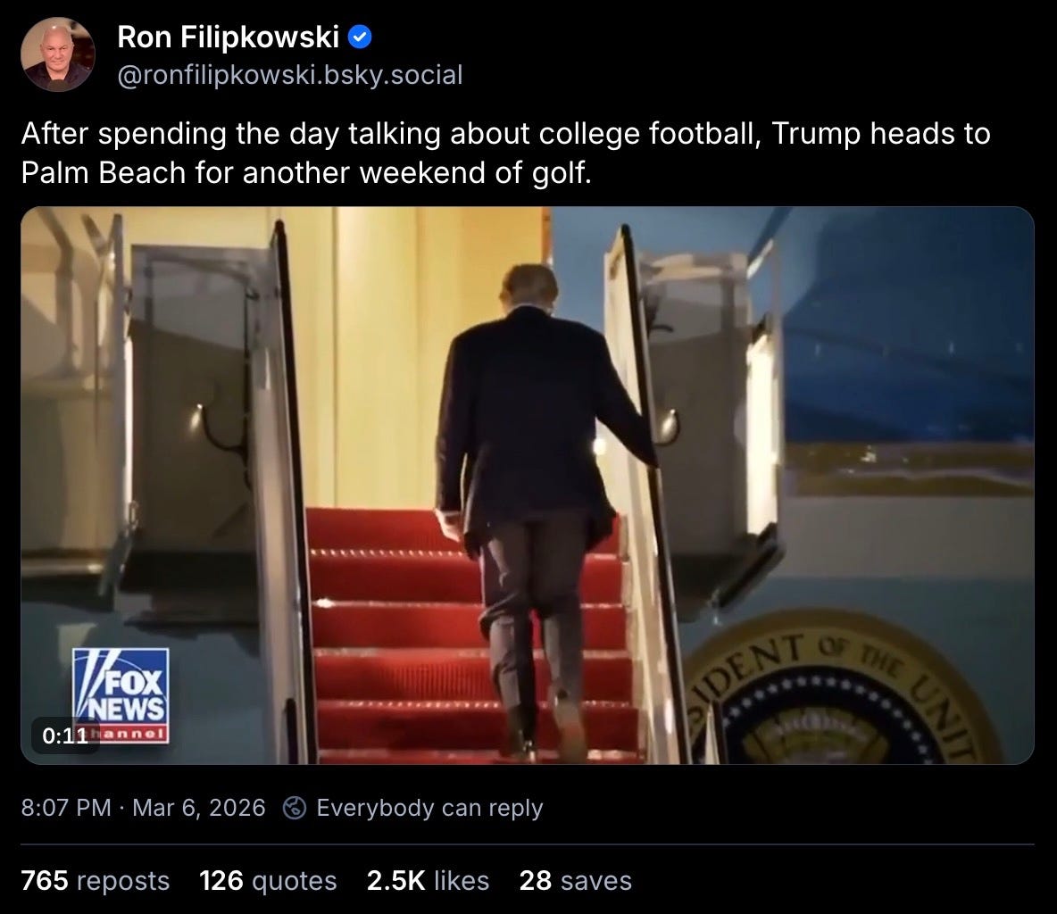 then, as the world burned all around him, the fucking idiot headed to Motel-a-Lago for a long weekend of cheating at golf.
