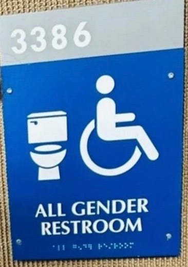 that’s the ADA-mandated sign you see outside every handicapped bathroom. they’re literally everywhere and there’s nothing controversial about them. only one person uses them at a time.