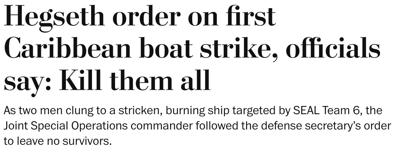 Because we're in the upside down, fishermen get offed with no due process while convicted drug lords are pardoned. This is the drunken logic of our Secretary of WarCrimes. MTG is saving her own skin but I will give her points for the righteous screed. Wake me when she does something that benefits other people.