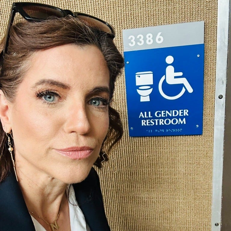 spoiler alert: yup, she maced herself — and not in the performative Nancy-Mace-beclowning-herself-in-front-of-a-unisex-bathroom way.