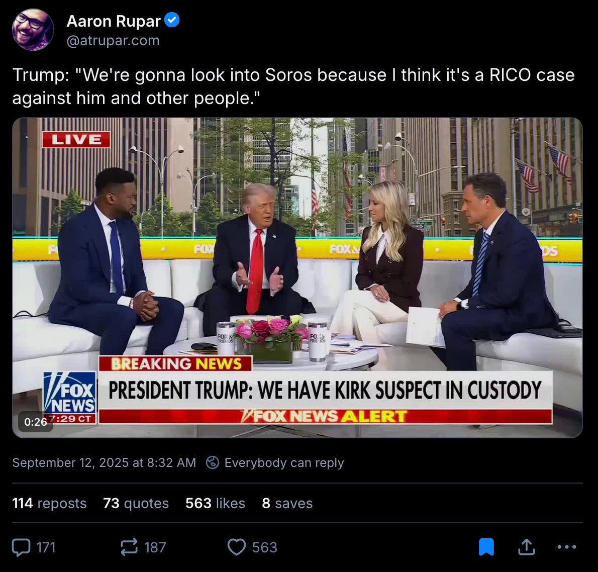 the fucking idiot announced that he was going to investigate George Soros, because reasons.