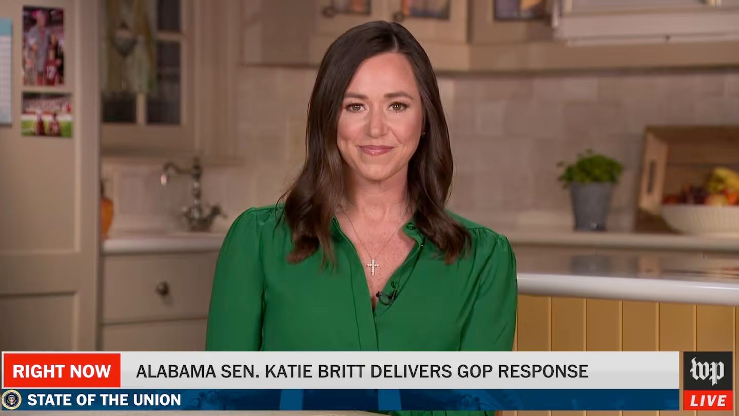 you remember Alabama Senator Katie Britt. she’s the christofascist tradwife who sat in a suspiciously-generic looking kitchen and spoke in a weird singsong whisper as she gave a universally-panned response to Joe Biden’s 2024 State of the Union Speech.