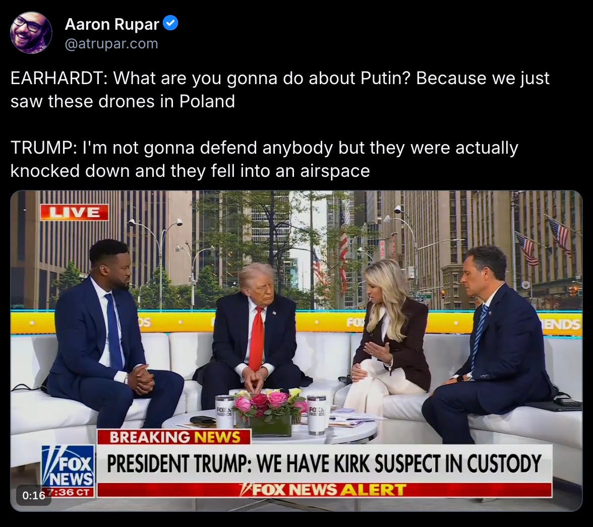 and then the fucking idiot claimed that it was really no biggie at all that Russia flew drones over Poland, because — and I quote — ‘they fell into an airspace.’