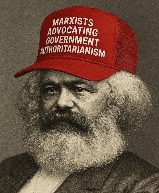 "I’ve got Karl Marx on the phone. he says he’s got a cool new hat that he wants to send you." That Image made me spit coffee...😂😂😂 SO GOOD!