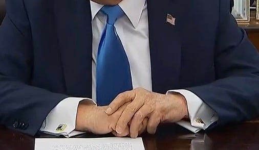 throughout the entire presser, the fucking idiot kept his rotting hand hidden.