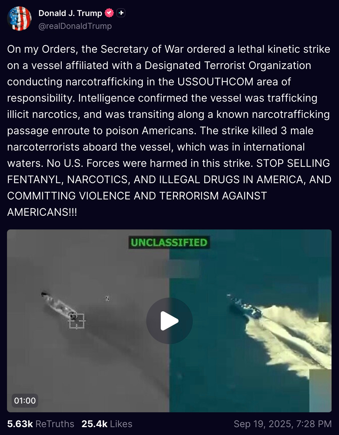 later, fucking idiot then announced that he’d blown up another boat — once again, without providing any proof of his outlandish claims.