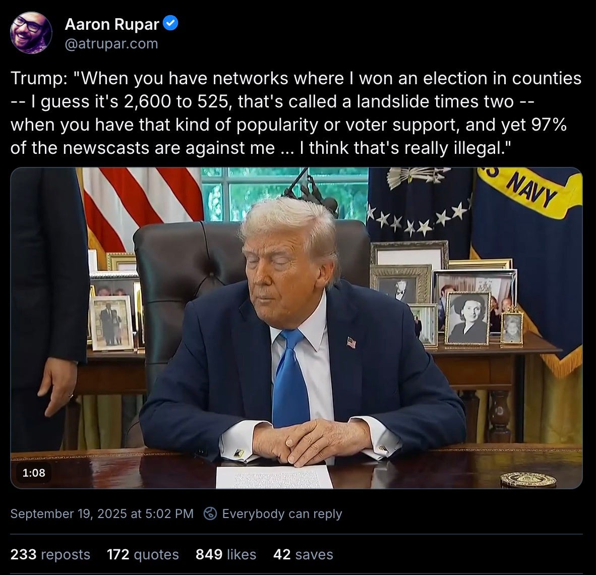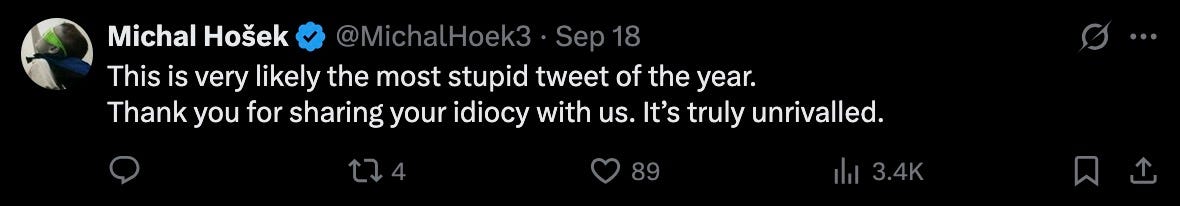 wow, people certainly do not like this post. after one hour, less than half the usual likes, and less than half the usual comments. and on social media, all people are doing is screaming at me about the "errors" in the Charlie Kirk image. yes, that's why it's being used to illustrate a post called "this week in STUPID"