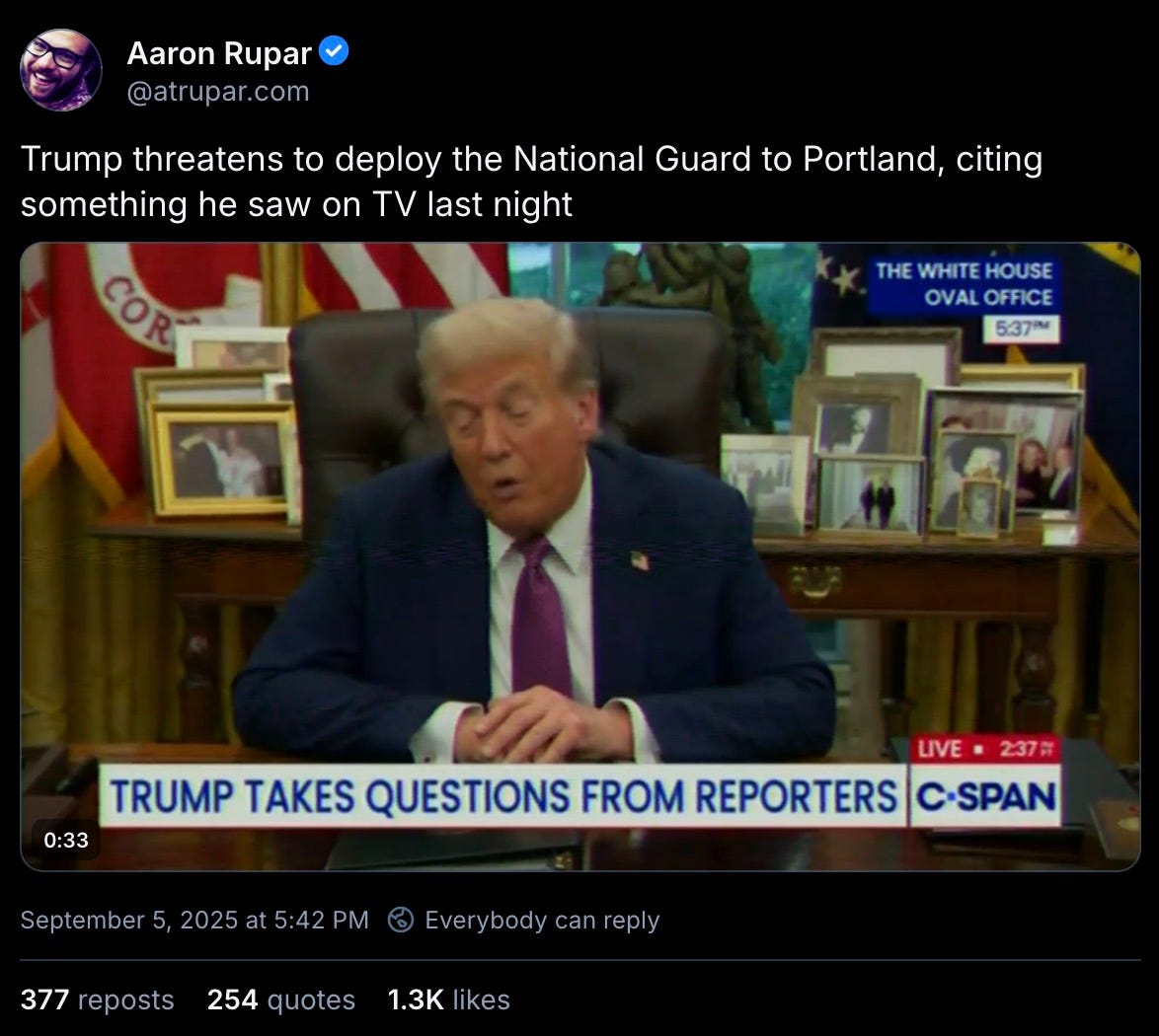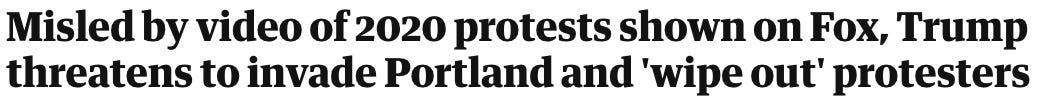 the fucking idiot then threatened to send the National Guard to Portland, because he saw something on TV.