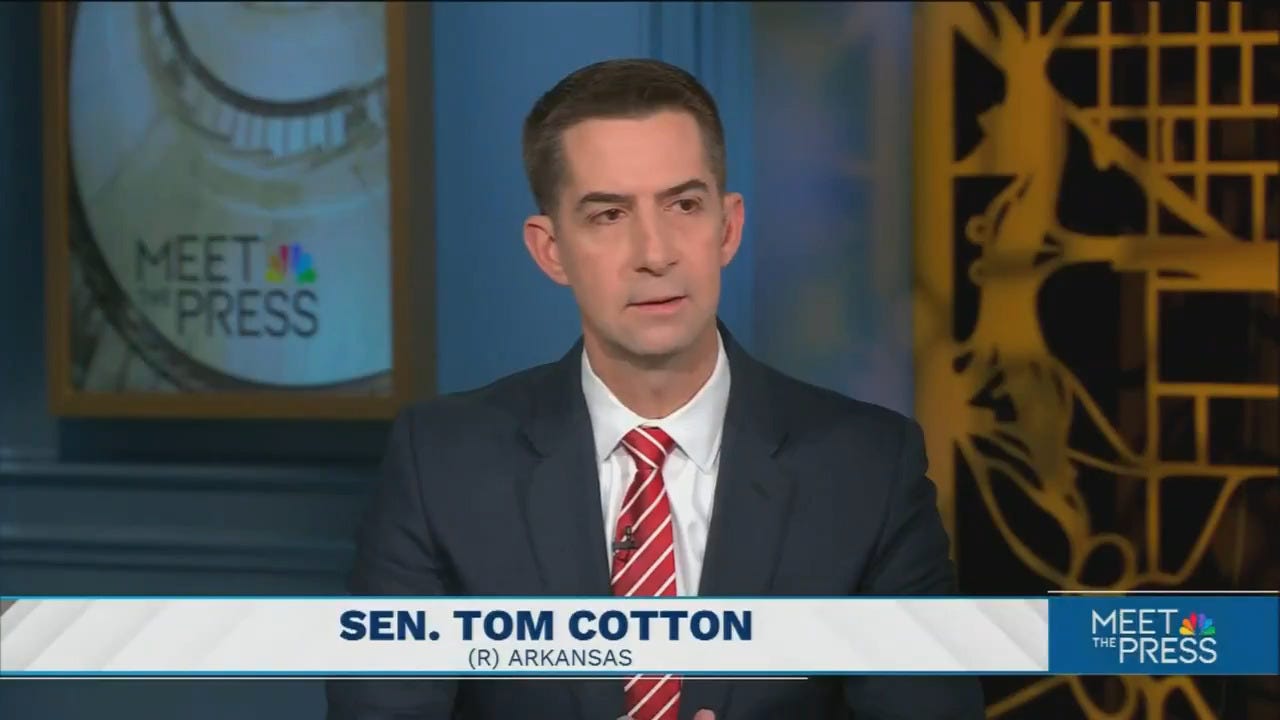 Tom Cotton knows this — yet he’ll happily go on the Sunday shows and gaslight about how ‘we had to kill those guys, one of them was taking off his shirt.’