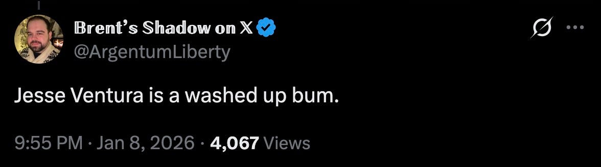 let’s go out with a bang. here’s your hero of the day: former wrestler (and former Governor of Minnesota) Jesse Ventura.