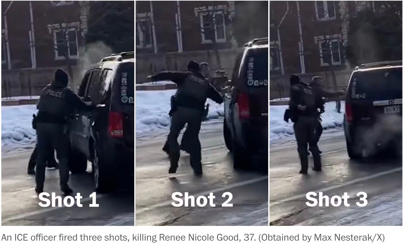 New footage dropped from across the street that showed the shooting of Renee Good. In no way was the ICE agent in danger, she wasn't trying to run him over, and it's even more clear that he murdered her. (As if we didn't know that already.)