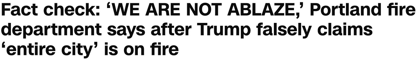 this isn’t the first time Donny’s pulled this “everything’s burning to the ground and only I can save it” bullshit. during the George Floyd protests in 2020, Donny never stopped beating the drum about how Portland, Oregon was a smoking ruin.