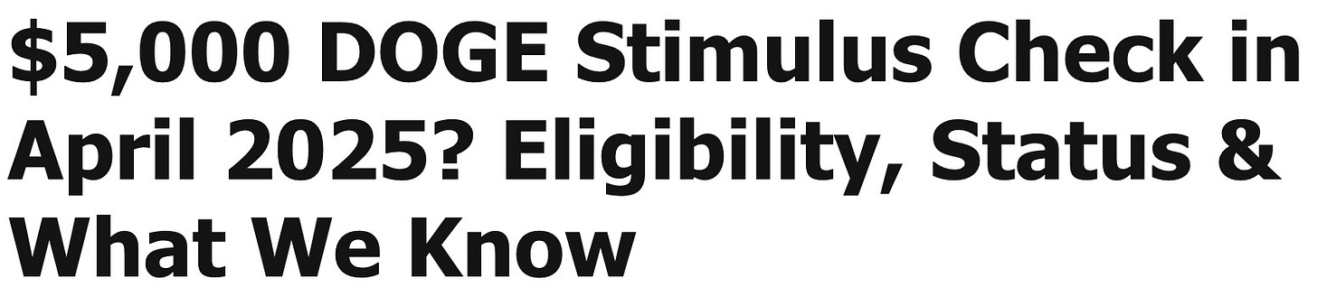 we know this, because we’ve been down this road before. remember those $5,000 DOGE stimulus checks that showed up in all of our mailboxes last April? me neither.