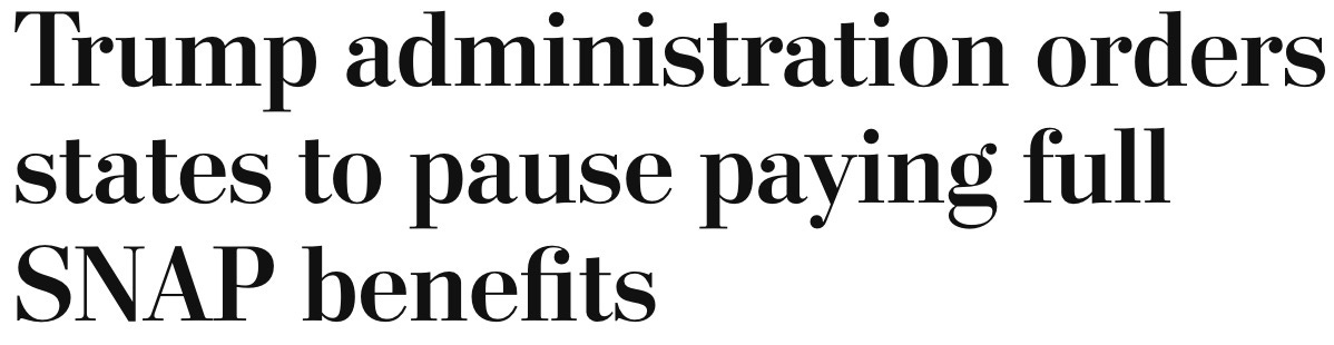 it’s cruelty for cruelty’s sake. there’s no other reason to be this petty. when a Rhode Island judge ruled on Thursday that SNAP benefits had to be paid in full, some states went ahead and did just that.
