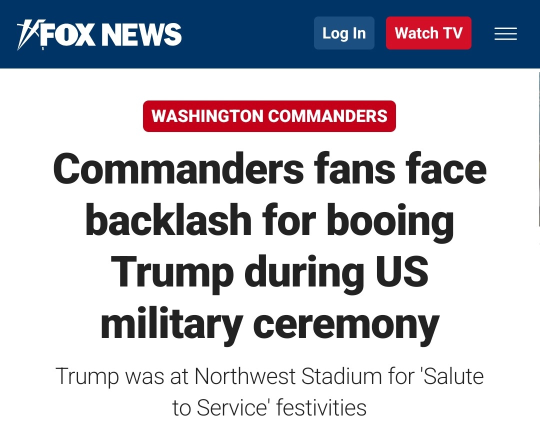 we definitely need a palate cleanser after all that. here, enjoy Donny getting mercilessly booed at yesterday’s Washington Commanders game.